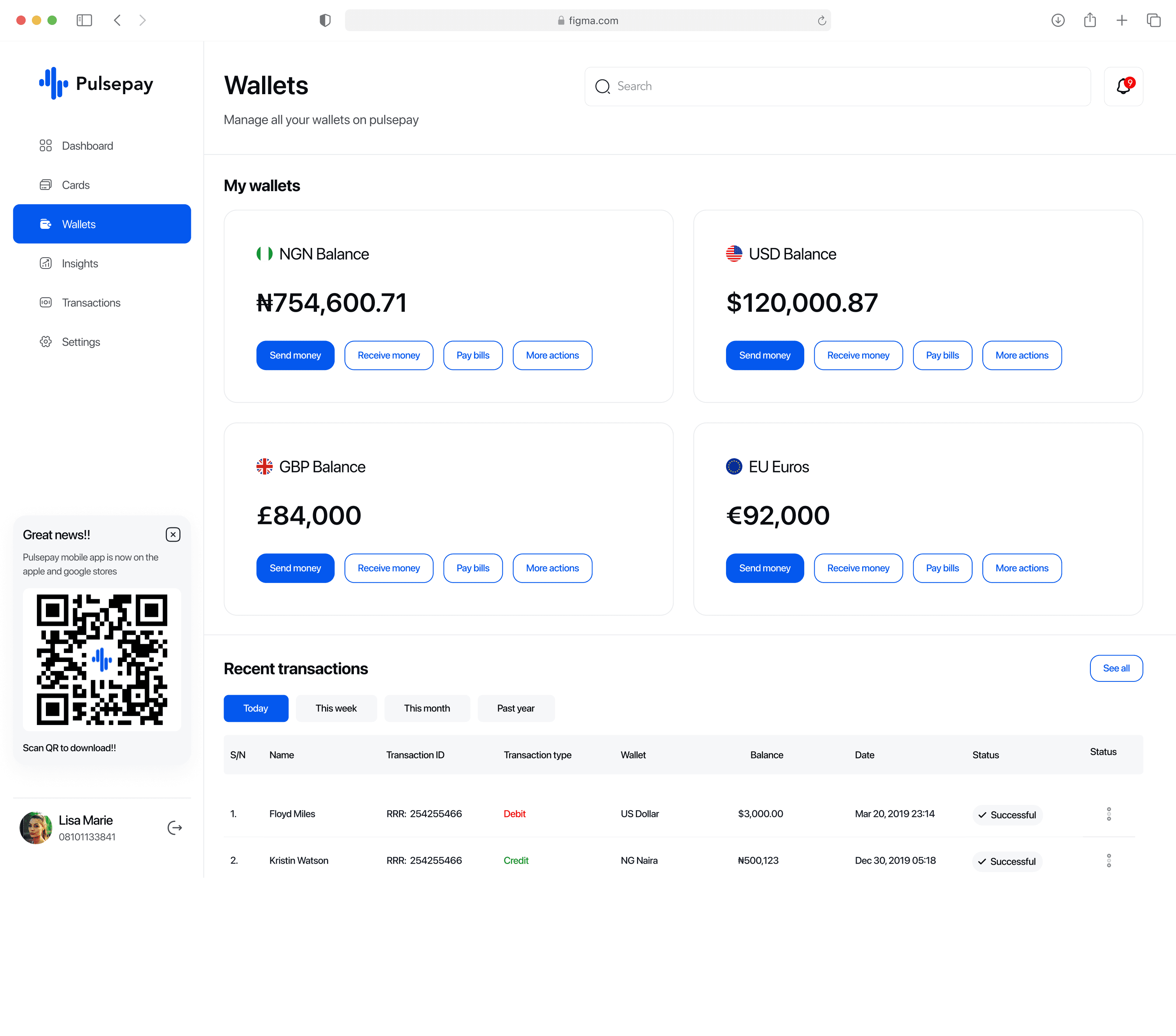 Pulsepay Web - Wallets